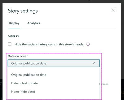 @MargieMassier -- Yes, this is still available in the story settings. However, you now have even more control over how the date appears on your story cover, so it's no longer a checkbox, it's a dropdown menu since there are three options.