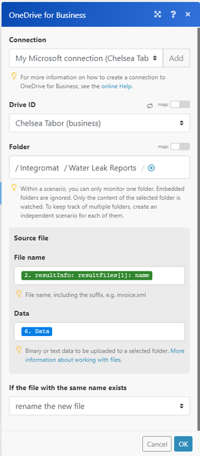 Adelaide Zumwalt‌, thank you. Your suggestion seems to work for adding an attachment for an email message. However, I want to upload the Feature Report to OneDrive and I don't see options for setting the content type in the OneDrive for Business Integromat module. Any ideas?