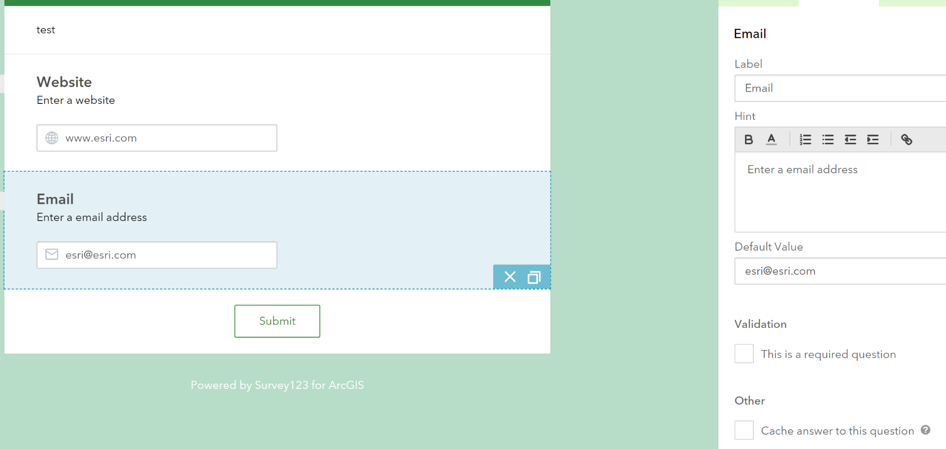 The Email and Website question type on the Web Designer and for users completing the survey to enter their email or website information. Ie similar to other questions they are for collecting information. You can also set default values for each question type too, as below. The email question is not used to send email to that address, you have to use Webhooks if you want that sort of functionality. Does that help answer your question?