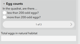 I want the Total eggs in natural habitat field to be the sum of Count of all eggs within quadrat and Total eggs calculation. But it doesn't populate if every choice from the select one is the same, only if a mixture of choices is made. Is there a way to make the calculation work if all choices are the same?