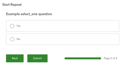In short, with style= pages and a simple 2-page survey with one page being a group and the second a repeat, the repeat shows and functions as expected in Connect and the mobile app. The web app is a different story: the repeat does not have any repeat functionality.