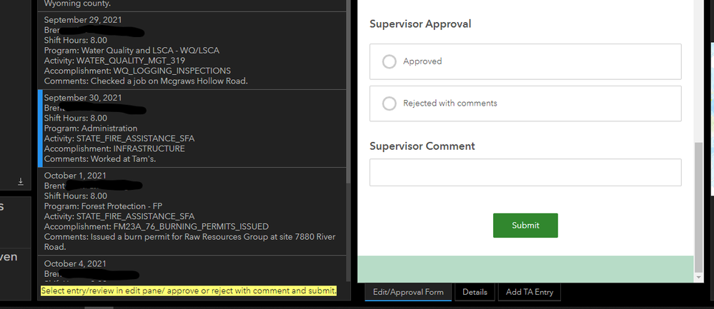 I'm trying to figure out a mechanism for approval of multiple survey entries using an embedded form in a dashboard that exposes an approval question for "approved" or "reject with comments" choices based on a supervisors review. It would work on one at a time approvals, but I need a way to edit (approve) multiple entries in one submission based on an employee attribute query. I am aware of the multiple attribute edit widget but it uses a spatial query and my data is flat so an attribute query would be needed.
