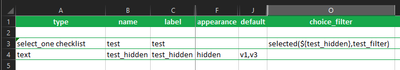 Which populates the "hide_multiselect" text box - but then in my XLS form - the choice filter for the "Videos Watched" question would be