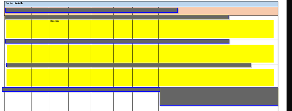 Below are screenshots of the issue. First is the output (yellow denotes gaps), second is the template. I've had to cover up text due to privacy issues.
