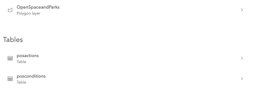 Users will be using Field Maps to select the Park or Open space. A link in the popup will link to the Survey123 surveys (posconditions and posactions in the case of the form I sent) . This information will be displayed via a Dashboard and online map. I was hoping that I could relate the tables to the polygons, lines, and points I was given by the agency I am working with so this information can be more easily displayed on the Dashboard. I know that I could do a spatial join in MapViewer Classic, but that seems to be too complicated for this task.