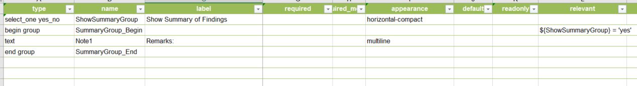 While I understand the logic for making this change, the problem is that we’ve been using this technique as a work-around for not having the ability to use tabs, pages, etc. to group the display of multiple fields. Up until the last release, it was working well but removing this functionality makes our S123 app unusable. Our only hope at this point, is the enhancement you mentioned in your last email. Any insight into when this will be available would be very much appreciated.