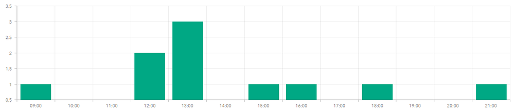 Hi, I have a hidden field (TimeCopy) with calculate format-date(${InterceptTime}, '%H:%M') to extract the time only from a DateTime field. The field automatically outputs to field type String, which doesn’t display the way I need it to when displayed in a serial chart format in the Dashboard. Each timestamps are shown as one bar in the chart, so 18:25 and 18:30 would be separate bars as below. I need a chart to show in hourly ranges, with every entry within the same hour counted and displayed in a single bar.