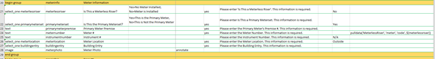 For context, users are entering utility meter attributes to an existing customer meter point. I’m unable to share everything due to confidentiality, but here are some examples as well as my worksheet: