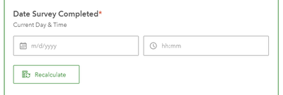 One last example 🙂 The 'Date Survey Completed' (row 17) is set with a Calculation of 'now() ' but it also stays blank until 'Recalculate' is clicked. This same question set up worked fine in the S123 field app, but it looks like this in the web survey.