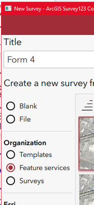 I just noticed one other question after downloading the latest version of Survey123 Connect. I am not seeing Templates and Surveys under Organization. It is just showing Feature Service. Can you tell me why it doesn't show templates and Surveys?