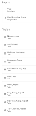 Yes, all those related tables are in the same Feature Service and all the repeat questions use the same table names.