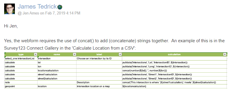 In Survey123 connect, I developed a form with a pulldata calculation and associated csv lookup table. This works great on the mobile app, but does not work within the web app.