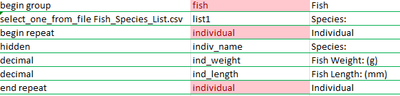 I have a repeating group, and within the repeating group, is a set of questions that can repeat as well. In the base group, I have a select one from file for species name. Then, I have an optional set of questions about that species that repeat for individuals that need to be tied to that species in the attributes when exported. I created a hidden and started a pulldata formula in calculations column to try and pull the answer to the original species select one from file question. However I cannot get it to grab the data.
