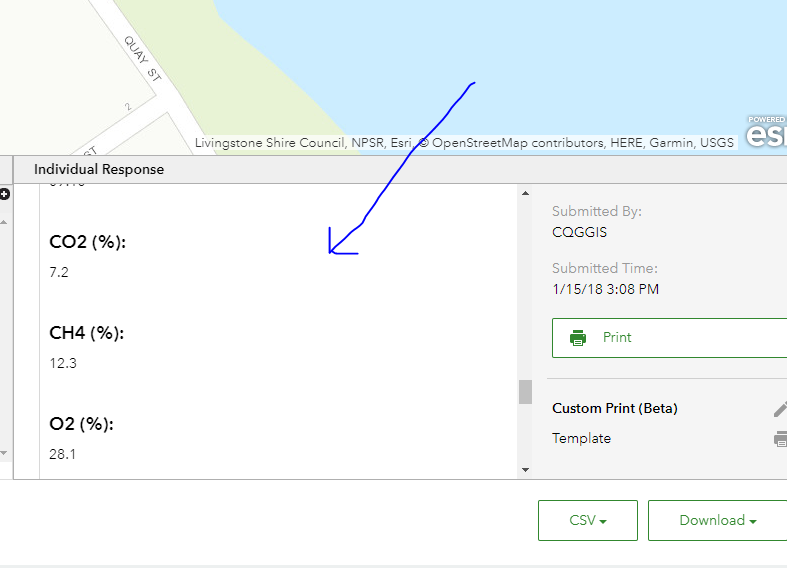 In the survey the CO2, CH4, O2 and H2S inputs were filled in. Interestingly enough they seem to work in the default template on the site, however if I download the default template and use it as a custom template it returns "undefined".