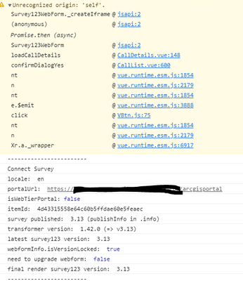 2, Set for js api version lock. When referencing js api, be specific about version as https://survey123.arcgis.com/api/jsapi/3.xx