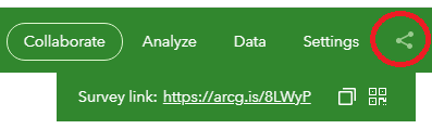 Then you can click on the Share icon to get a link to the web survey you've created. Email that to your users and when they click on it it will open a web page in their device's browser with the web survey.