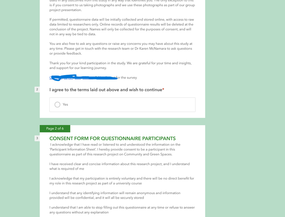 The missing chunks include my survey description, and the 1st page description text (which are substantially large blocks including ethics information