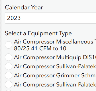 selected(${CalendarYear},YearOfRate) and ResourceType = 'Equipment'