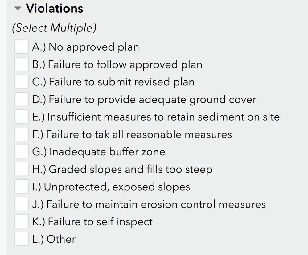 This is the list of options for the inspector to select in the Survey123 mobile app.