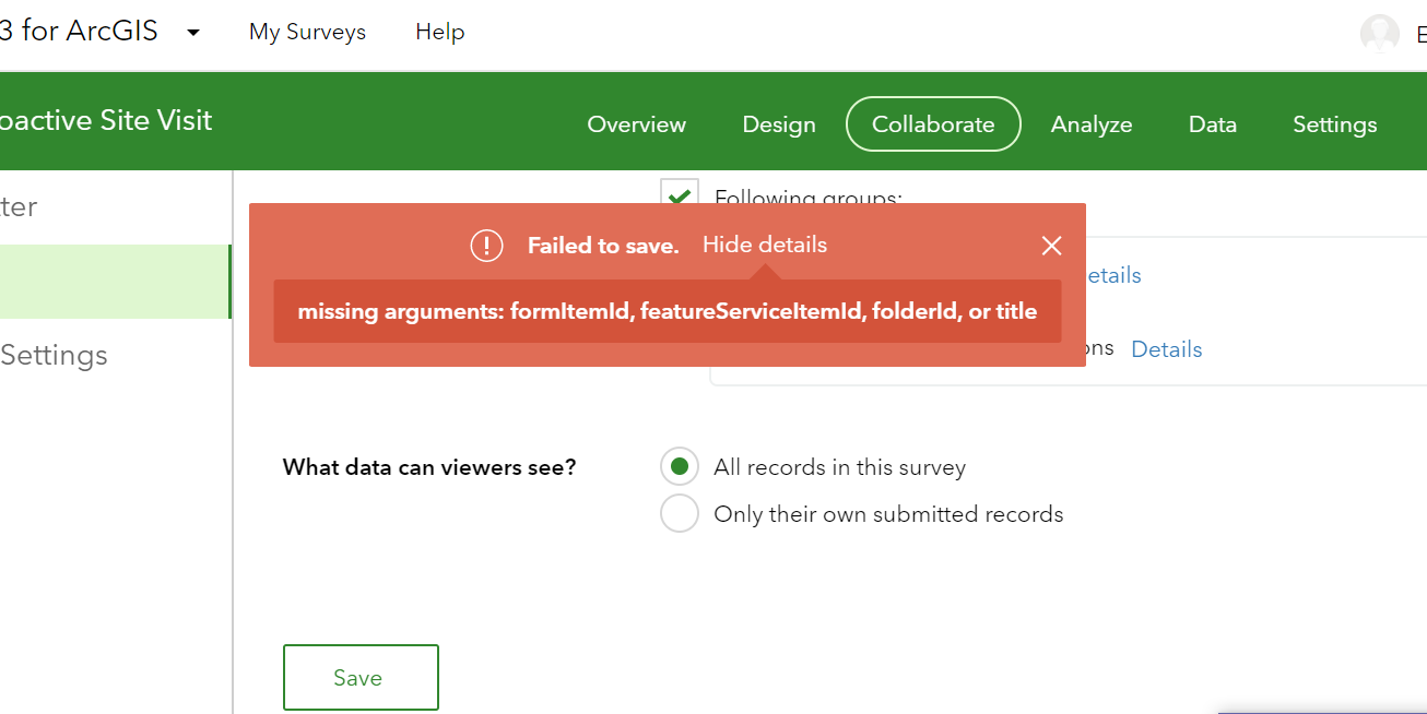 I deleted the view but when attempting to reshare in Survey123 i am getting the following message: