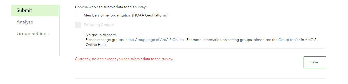 On this page, when you select the Submit tab on the left - this determines who can access, view, and submit responses to your survey.