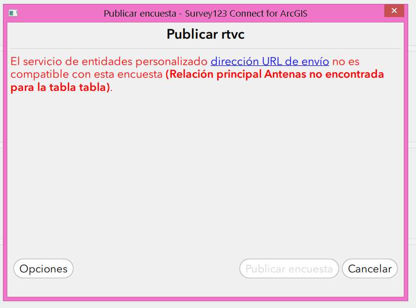 Pero en el momento de publicar el formulario nos aparece el siguiente error: