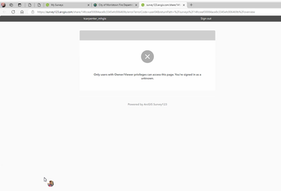 Here's the message we got after he logged into Survey123 on the web and clicked on the overview I sent him:
