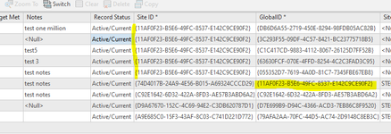 Here the data in my child table during testing, you can see it keeps using the first GlobalID for that site for all the subsequent sites.