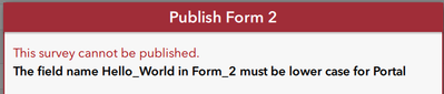 However, if the layer is published from, say, ArcPro, and the names have capitals, you can create a survey based off that layer without issue.