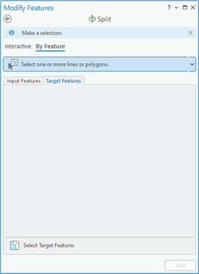 This will populate the input features on the Split Tool. Next switch to the Target Features tab on the Split tool.