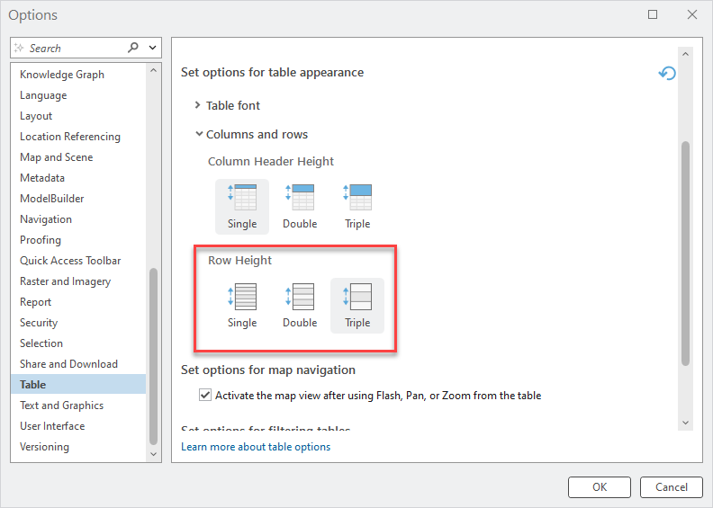 When reviewing errors using the attribute table, consider changing the row height of your table so you can see all the asset types on an error. You can change this by going to Project > Options > Table > Columns and rows > Row Height and set it to triple or double.