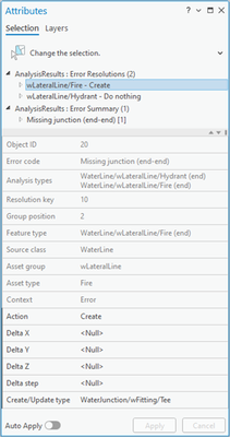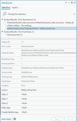 The Apply Error Resolutions tool is best used during the data migration process, before the network topology has been enabled and before data has been loaded into an enterprise geodatabase. This tool must be run on a utility network with a disabled topology. The tool can be used to apply resolutions against data that has been loaded into an enterprise geodatabase if the data is not registered as versioned, and the tool is run as a user that has permissions to edit the corresponding feature classes using the database connection.