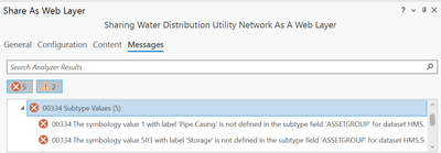 I am trying to publish my water utility network into the enterprise, i tried to run the analyze and i ended up with this error