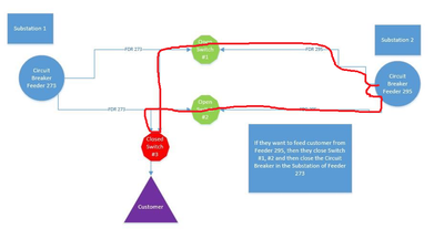 I was told if they want to feed the customer from FDR 295 they close the circuit breaker in the Substation at FDR 273, which again is just one device with the two concurrent lines going into it.