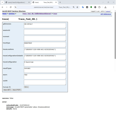 I am trying to trace via REST service, how should the trace location parameter be defined? Even if I remove the square brackets and double quotes, it gives an error.