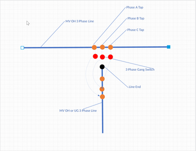 I think I'm closer with your drawing but still have a few questions. You have a Line End listed on your drawing. In Line Ends you have an option for an asset type of Overhead Line End (overhead) and Riser (underground). So if you put a Riser where you have your black dot on your drawing for Line end because that is an 3 phase Underground Line how do you do the association between your overhead three phase load break switch to the riser, as there is no Junction to Junction Connectivity Rules for that? Or am I using the wrong junction for that underground 3 phase line?