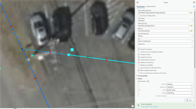 I've been trying to accomplish this via Tracing because I'm trying to figure out what's possible with it-- I've seen utilizations that suggest it can be used as a complex configurable selection tool within the Utility Network. Below I have some screenshots of the same Filter Barrier (Using a network category to select the first feature that is part of "switching" and including structures and containers) run with the Isolation Trace and the Upstream trace. The Upstream trace includes the line and the Isolation trace does not despite having the same request for each. the only difference I could find in the code (also below) when I transferred these traces to modelbuilder and then to python was "trace_type="ISOLATION"" versus "trace_type="UPSTREAM"", which suggests some back-end configuration that is not editable that causes an Upstream trace to include the line.
