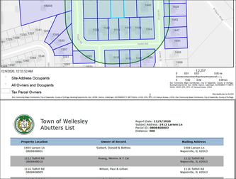 1. a sample output pdf containing a map and abutters list that will looks like this