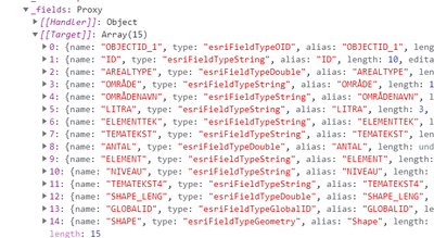 May I please ask what and why should we 'wait' for a layer to be loaded. Aren't they supposed to be loaded upon instantiation of the FeatureLayer object through it's constructor? I mean, I can see that the _fields property exist as a proxy object, but I can't fetch it without using your approach with the load-function. This is the code that works now with the accepted answer: