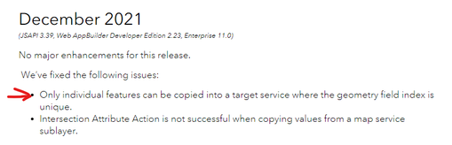 Hi, one last limitation we were wondering about. We were tested with unversioned data with the WAB builder Developer smart widget in ArcGIS Enterprise 10.9.1 and the create features button was there, we tried with a versioned feature service and the option disappeared. Is this correct that this option is unavailable with a versioned feature class?
