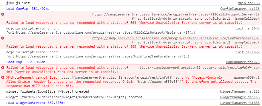 HI, got message below when using WAB dev edition. I can browse the service via rest url, but it said the services are not available. Can anybody tell me how to change these services (911CallHotSpot and Wildlife) behind so i can use my services? Thanks,