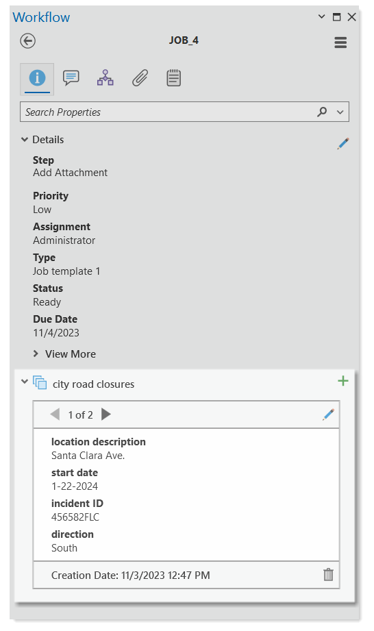 The Notes tab is a new addition to the workflow pane in ArcGIS Pro that allows you to review, edit, and add informal information to jobs. The Notes tab is privilege controlled to allow workflow administrators to manage which members can view and edit notes.