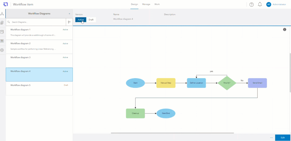 Draft diagrams allow you to edit, update, and review changes without affecting your active workflow diagram