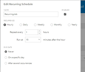Job schedule is set to 1Hr 15min.