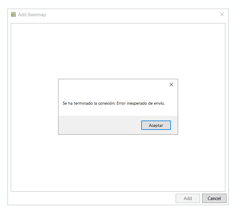 Tengo un error al intentar cargar un mapa base en ArcGIS (Add Data -> Add Basemap)
