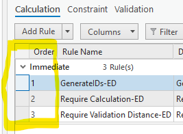 For example, the order ID would be a unique number between all calculation, constraint, and validation rules. The order ID would be honored, regardless of what kind of attribute rule is.