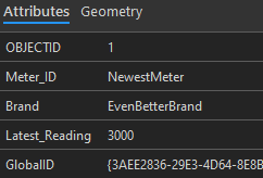 Note that, while this is absolutely a legit way of copying the new Meter_ID to the feature class, this won't happen automatically. You have to update the WaterMeter after you added a new WaterMeterWorkHistory record.