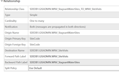 Relationship Class: WNV_StagnantWaterSites_TO_WNV_SiteVisits