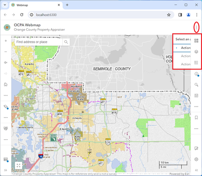 There may be some panel conflicts with the code. Updated the Codepen to reflect one Action Menu with the slotted Dropdown: https://codepen.io/geospatialem/pen/VwNGBae