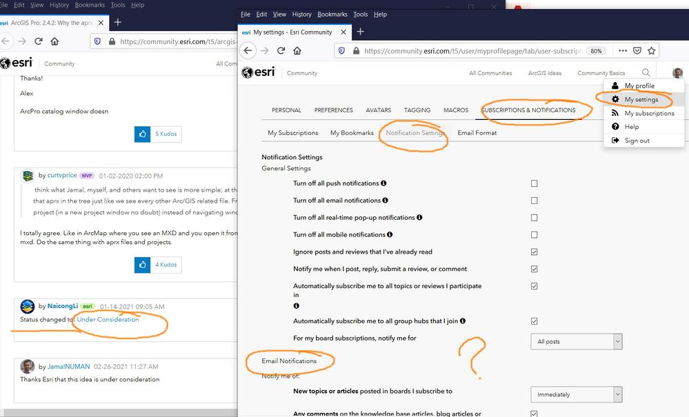 Esri Community: How to be notified via e-mail as a comment is added to one of my ideas?